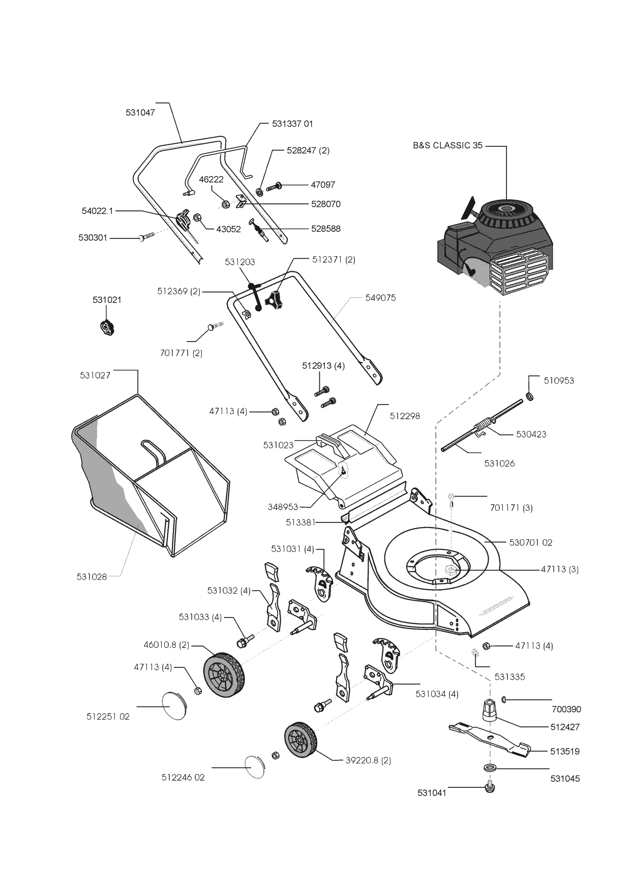 Zeichnungen von Sigma Benzinrasenmäher CF 40 B 12/1999 - 12/2002 mit der Geräte-Artikelnr. 120512: