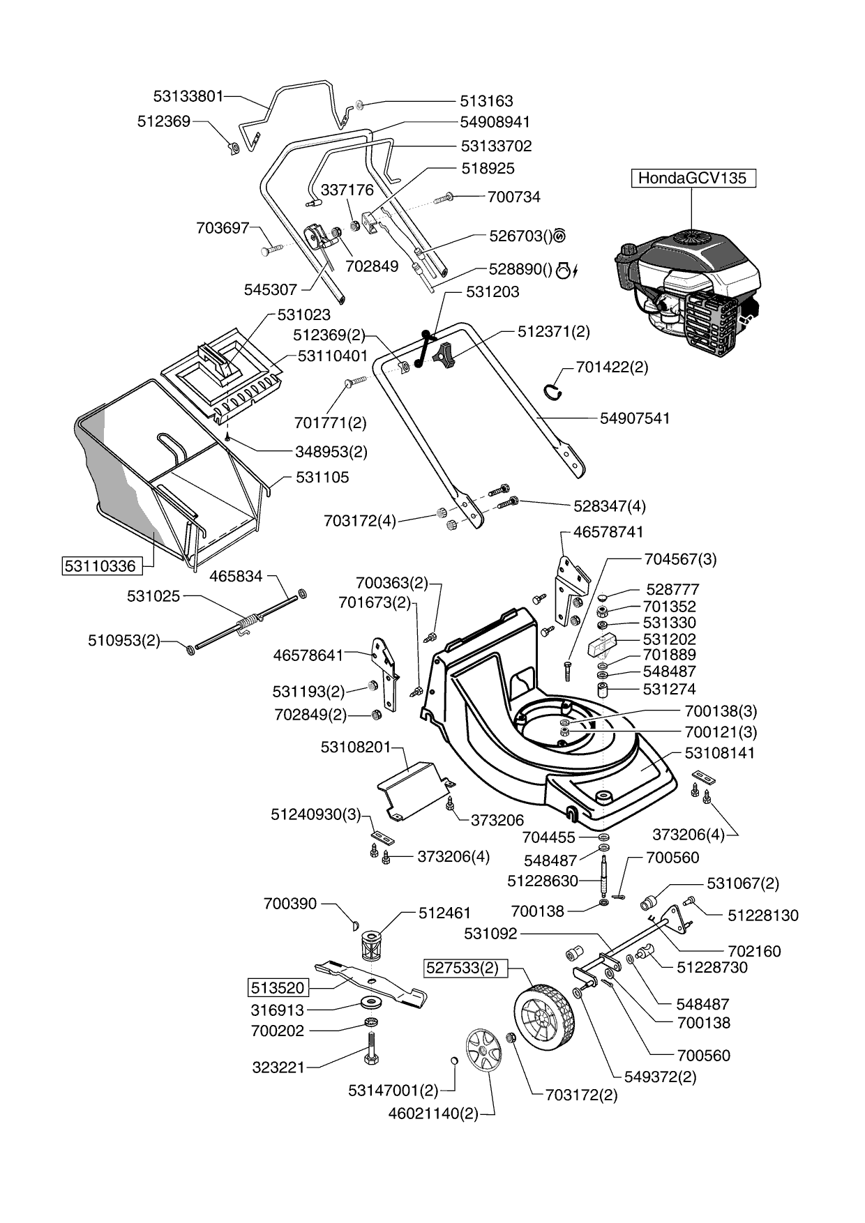 Zeichnungen von Sigma Benzinrasenmäher HLA 47 HR 12/2009 - 05/2007 mit der Geräte-Artikelnr. 121220: