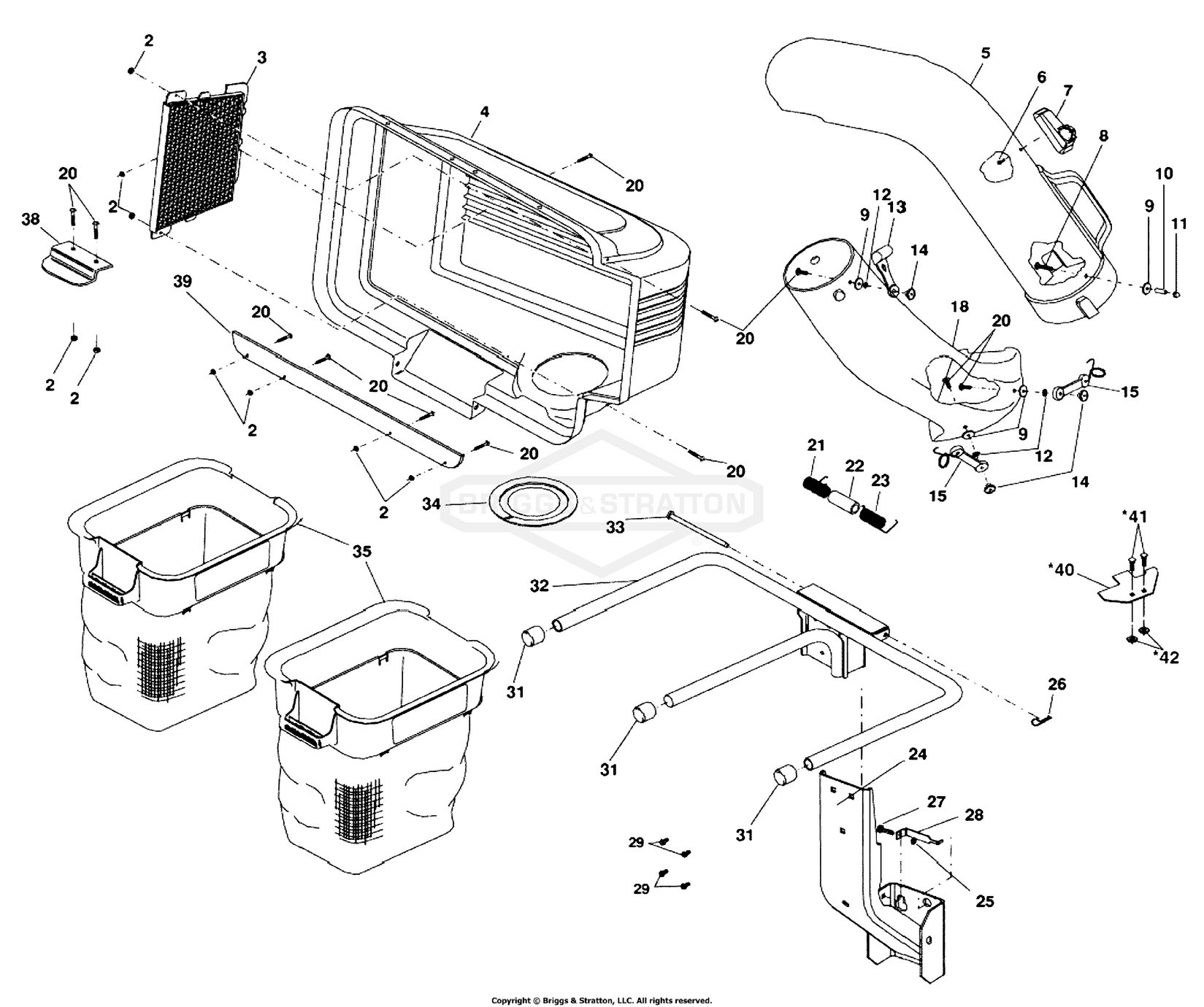 Zeichnung Snapper 2691183-00 - ST1842, 42" 18.5 Gross HP Tractor aus der Zeichnungsgruppe 42" Twin Catcher: