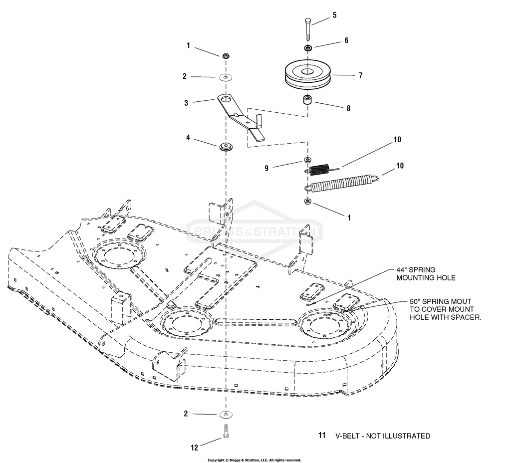 44" & 50" Mower Deck - Belt, Idler Arm & Hitch Group