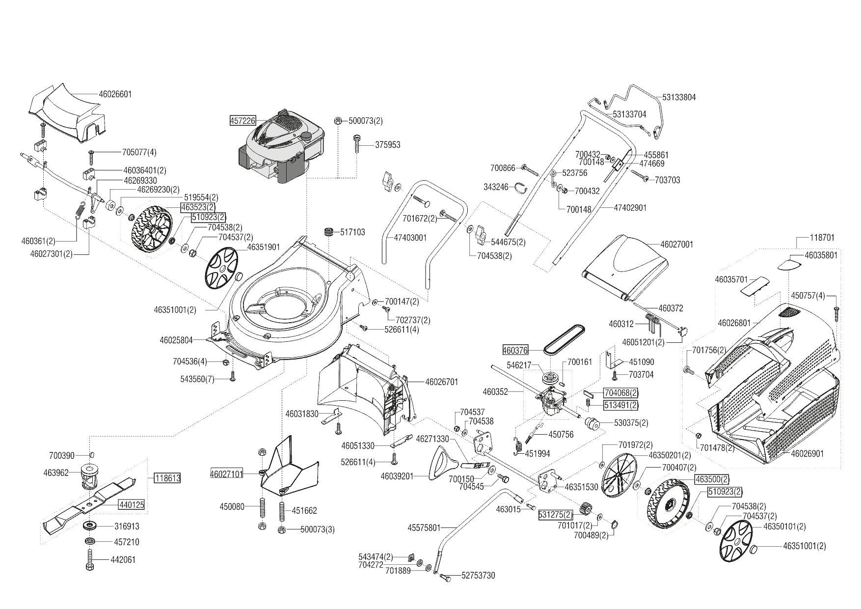 Zeichnungen von Ginge Benzinrasenmäher 46 B AUTO CLASSIC mit der Geräte-Artikelnr. 119828:
