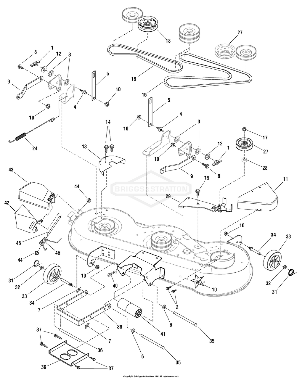 Hier finden Sie alle Ersatzteile von Snapper 7800542 - LT23460AWSC, 46" 23HP Hydro Drive Lawn Tractor LT130 Series der Zeichnungsgruppe 46" Mower Deck - Clutch & Support: