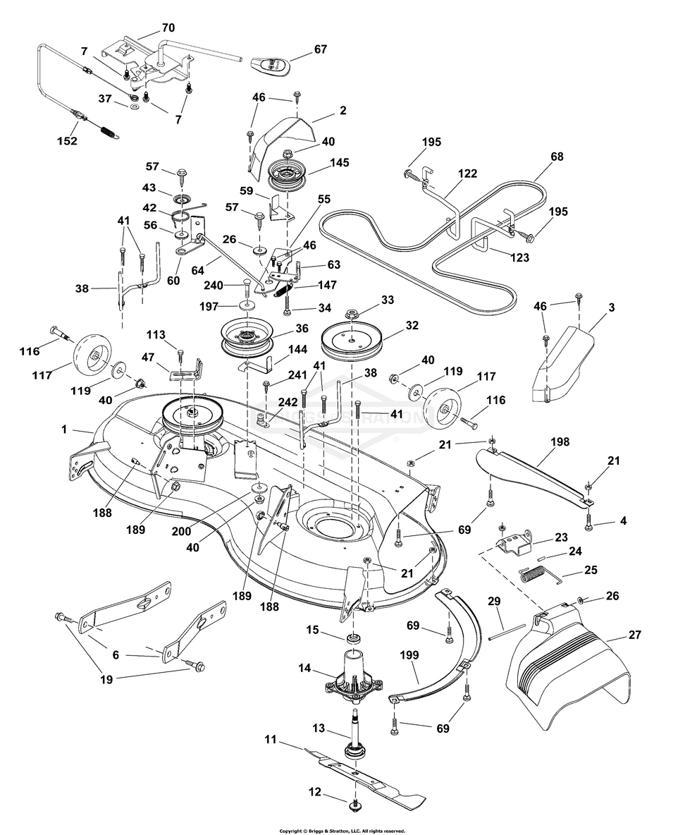 Zeichnung Snapper 2691570-00 - 960440016, ST2446, 46" 24 Gross HP Hydro Drive Lawn Tractor aus der Zeichnungsgruppe 46" Mower Deck Group:
