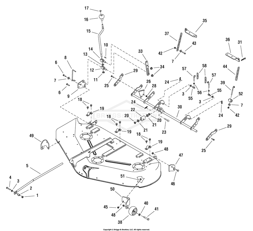 Zeichnung Snapper 1694627 - YT2250, 50" 22 HP Hydro Drive RMO Tractor YT400 Series aus der Zeichnungsgruppe 50" Mower Deck - Height Adjust Group:
