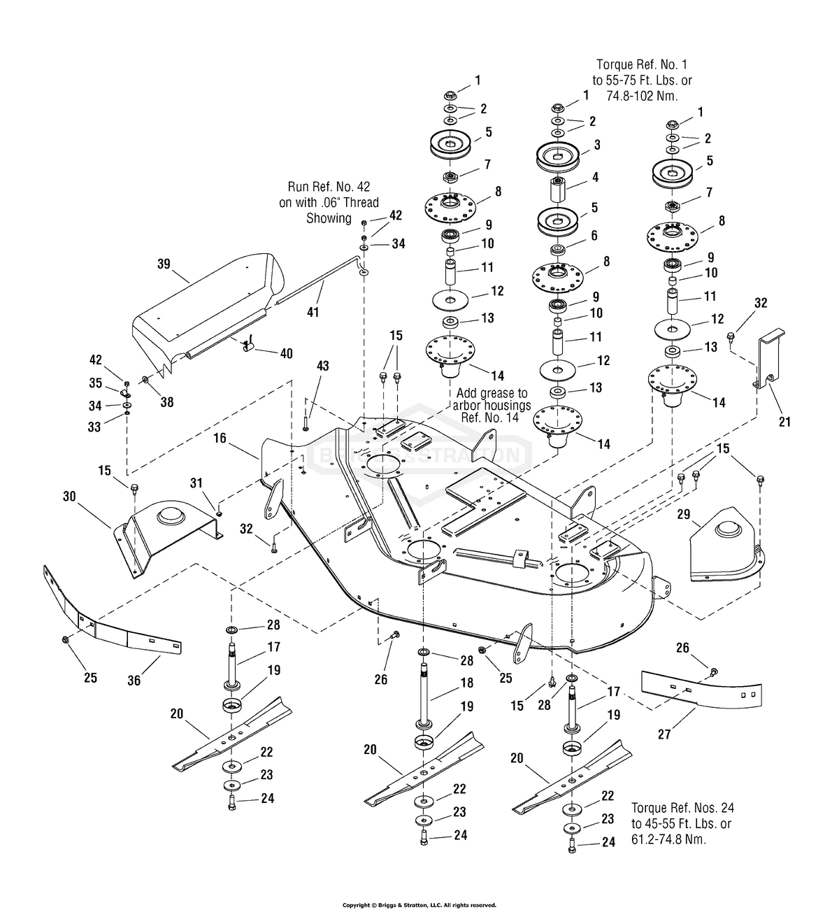 Hier finden Sie alle Ersatzteile von Snapper 2690647 - ZT2450150ZBVE, 50" 24 HP ZTR Twin Stick 150Z Series der Zeichnungsgruppe 50" Mower Deck - Housing & Arbor Group:
