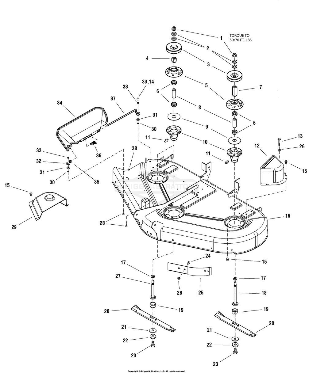 Zeichnung Snapper 2690498 - ELT2044, 44" 20 HP Hydro Drive Euro Tractor RMO LT200 Series aus der Zeichnungsgruppe 50" Mower Deck - Housing, Arbors & Blades Group - LT22500: