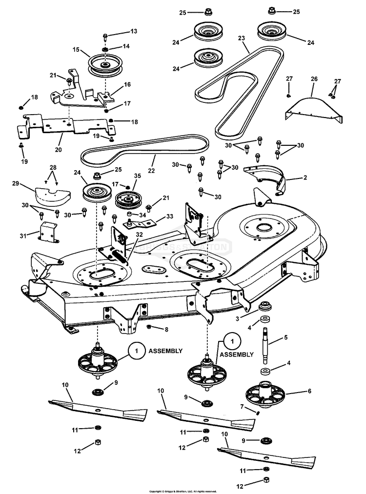 Zeichnung Snapper 7800318 - SLT24520FC, 52" 24HP Lawn Tractor LT100 Series aus der Zeichnungsgruppe 52" Deck Blade Drive Assembly: