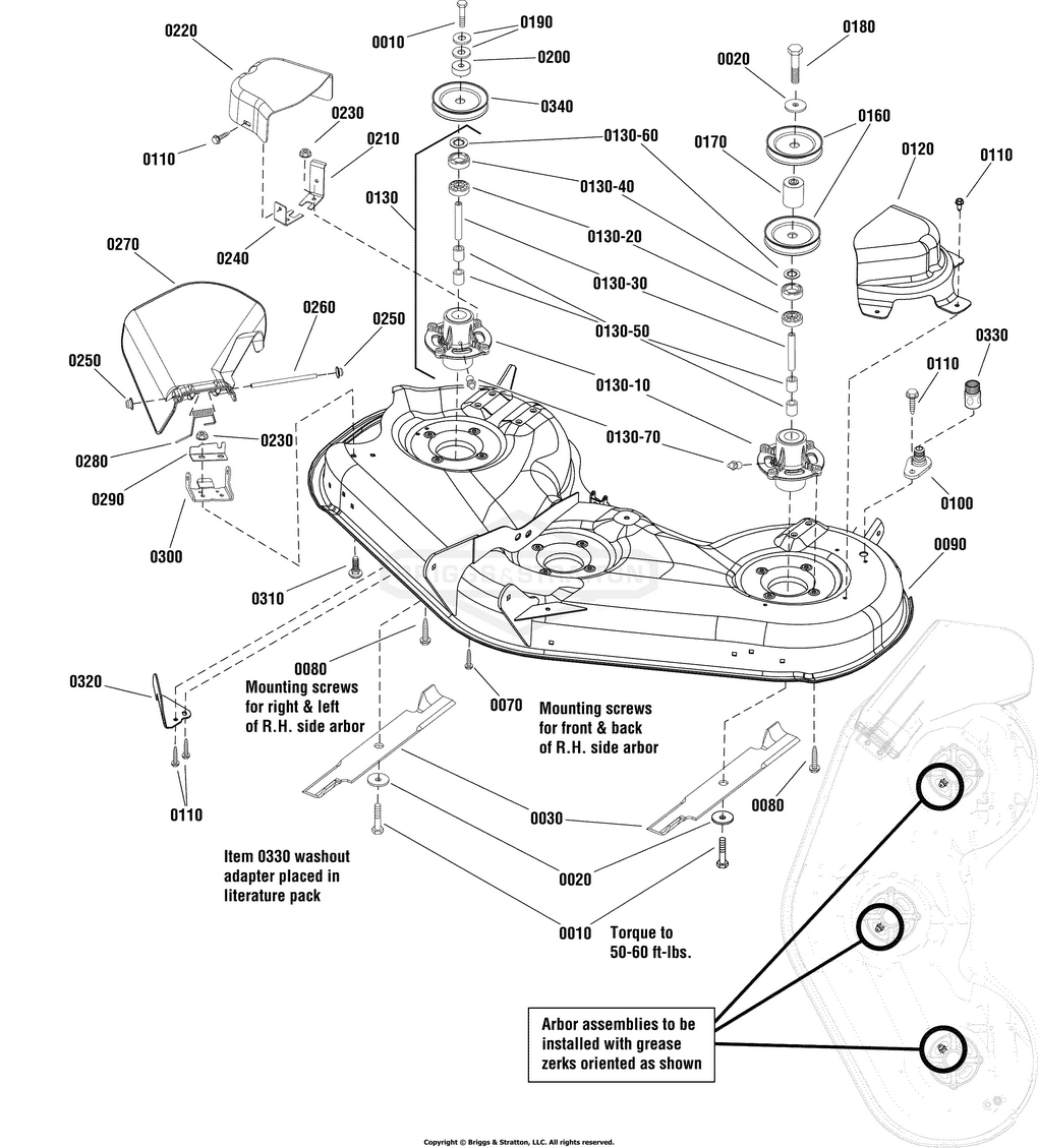 52" Mower Deck - Housing, Arbors & Blades
