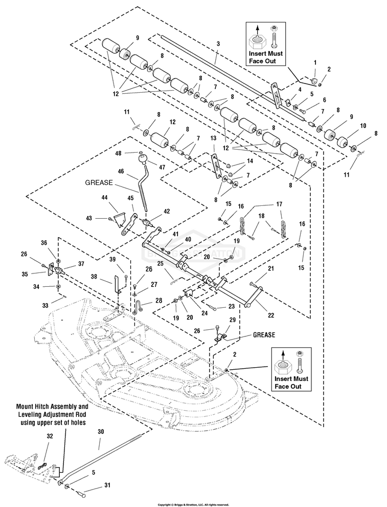54" Mower Deck - Height Adjustment & Roller Bar Group