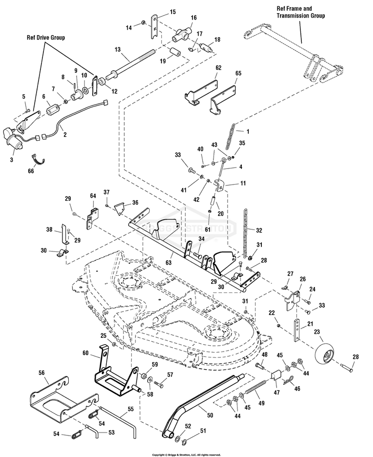 Zeichnung Snapper 2690627 - SGT27540D, 54" 27HP Diesel 4WD 3PT Hitch GT600 Series 0 aus der Zeichnungsgruppe 54" Mower Deck - Height Adjustment & Roller Group: