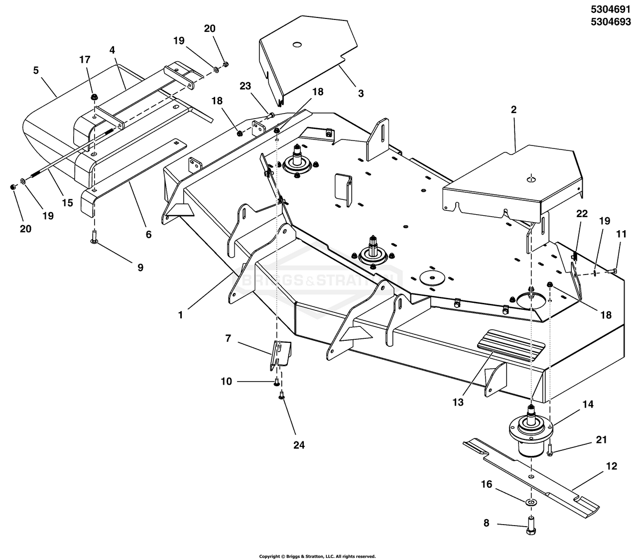61" Mower Deck Group - Housing, Covers, Spindles & Blades