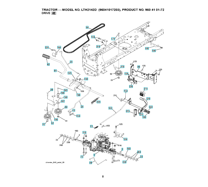 Ersatzteile für Husqvarna Gartentraktor LTH2142D ( 96041017201, 2010-07 ) ANTRIEB: