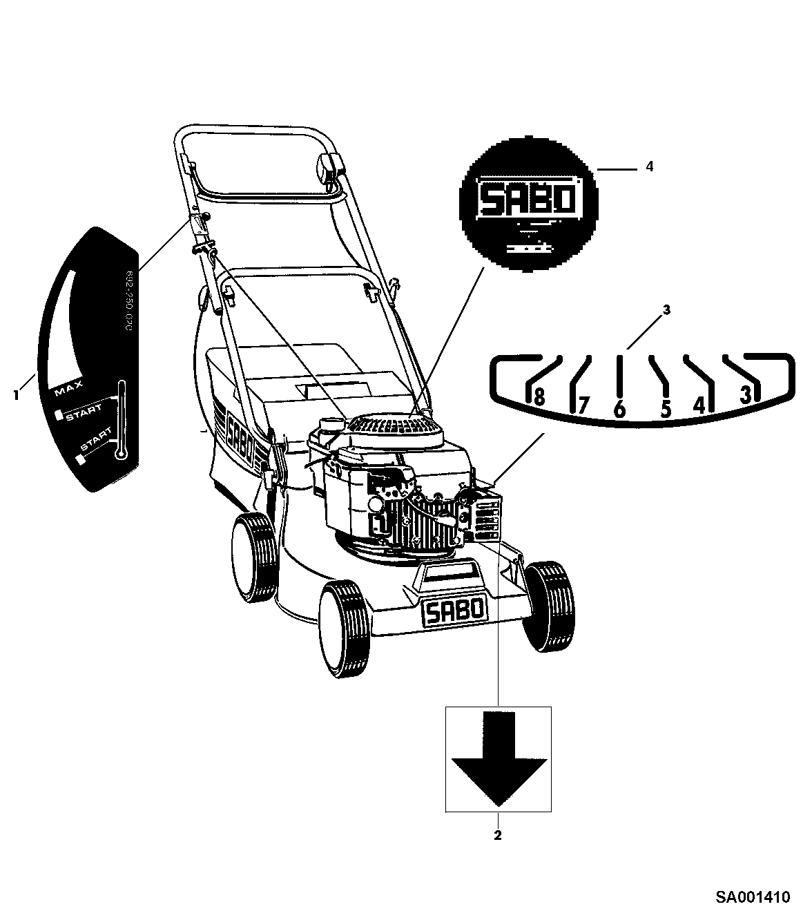 Zeichnung Sollten Sie Fragen zu einem Ersatzteil vom Sabo Rasenmäher Benzin-Rasenmäher 43 Spirit PC4396 90 43-4 Economy Turbostar™ EDP-Nr. SA195 mit 4-Takt-Motor B und S und ohne Antrieb haben, können Sie uns gerne eine E-Mail (mit einem Foto vom Typenschild Ihres Gerätes) schreiben oder eine Ersatzteilanfrage stellen.