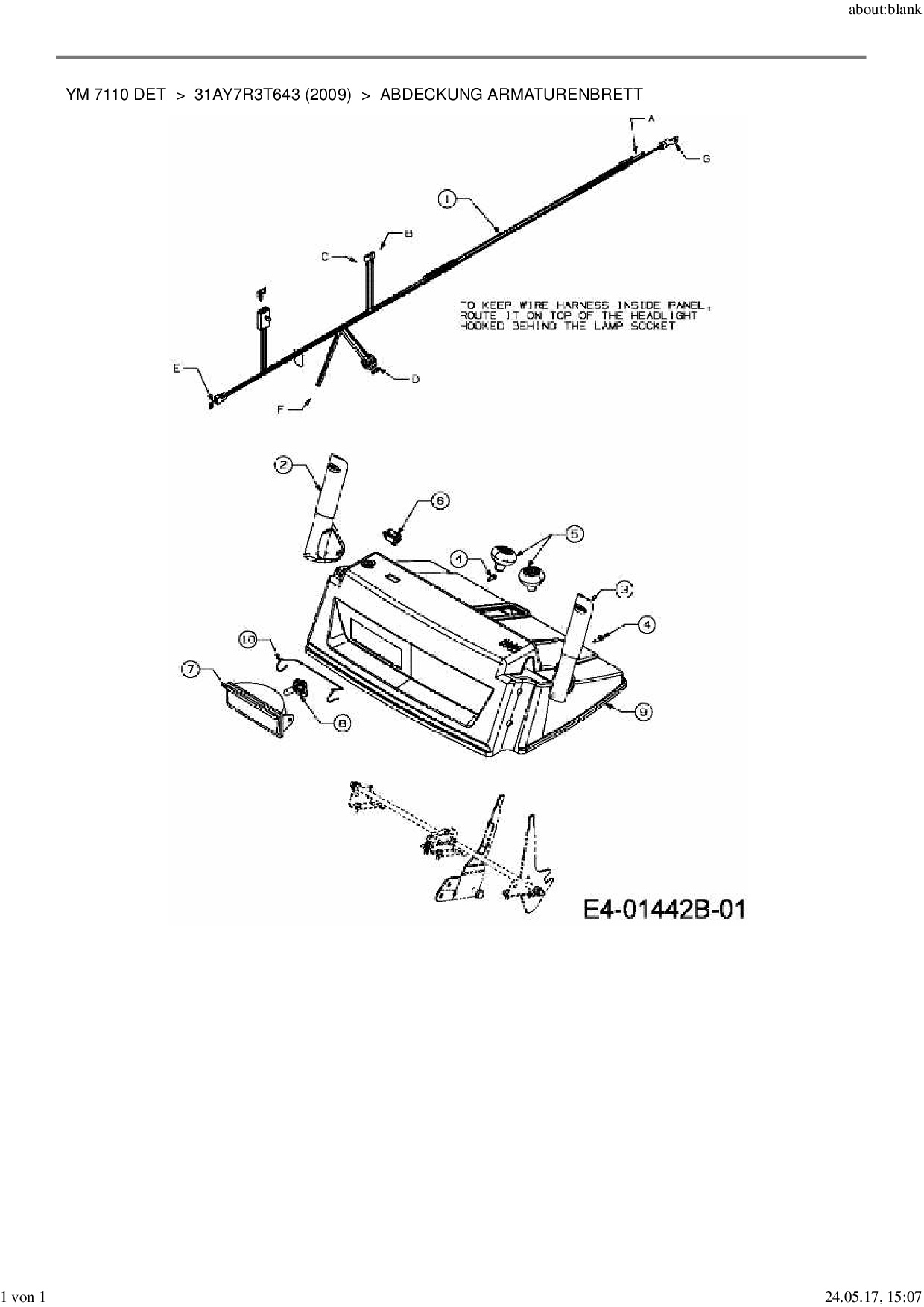 Download Ersatzteil-Zeichnung Yard-Man YM 7110 DET Zeichnung Abdeckung Armaturenbrett (PDF-Format)