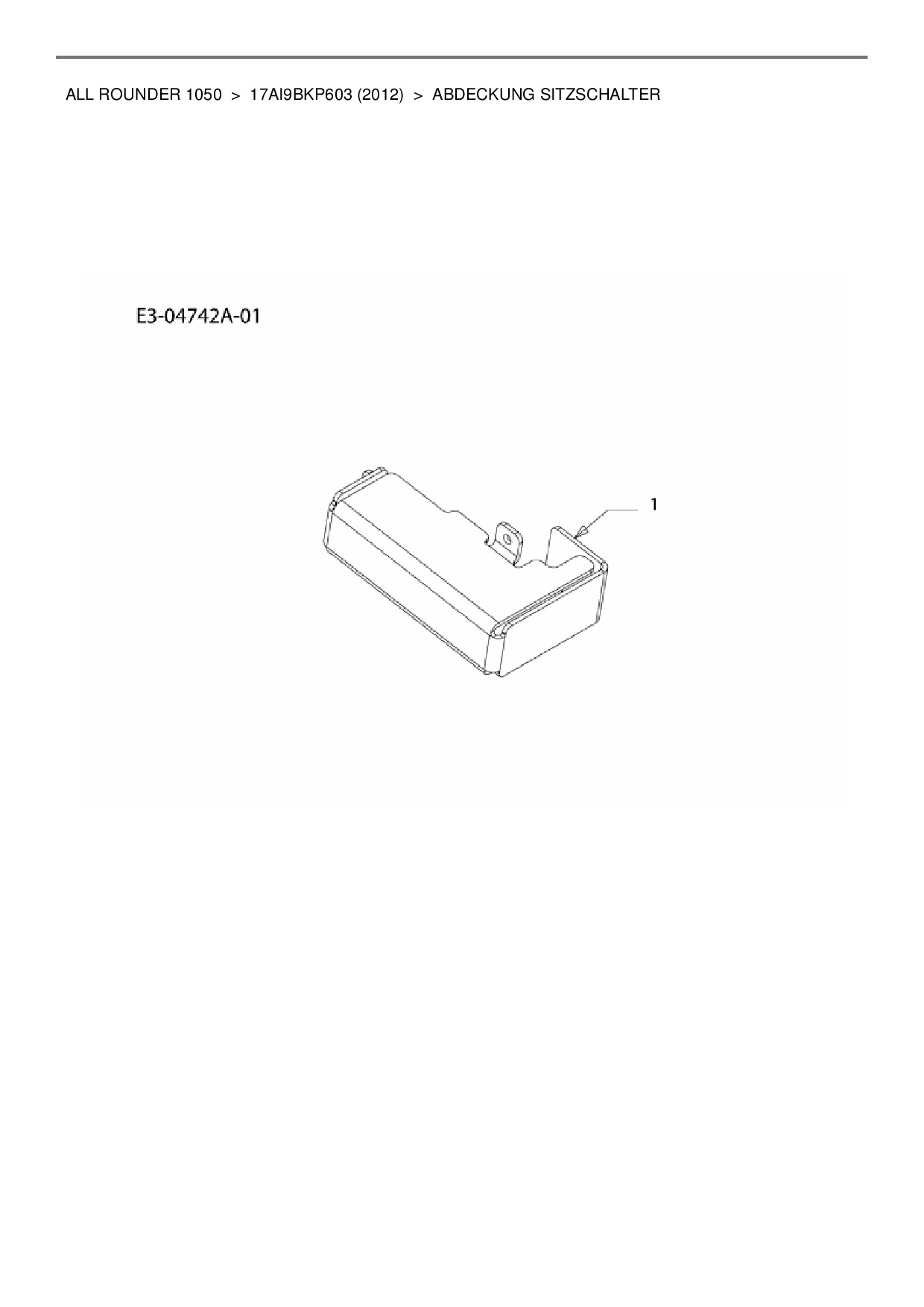 Ersatzteile für Zero Turn Cub Cadet All Rounder 1050 aus der Zeichnung Abdeckung Sitzschalter: