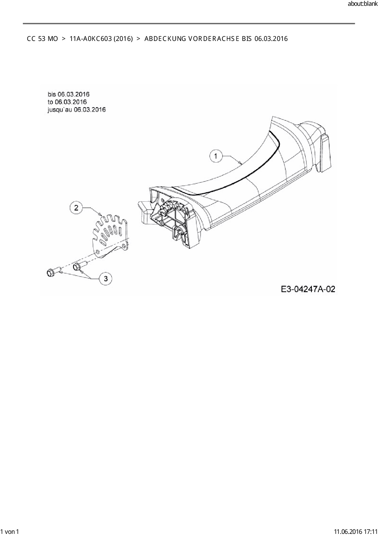 Ersatzteile für Motormäher Cub Cadet CC 53 MO aus der Zeichnung Abdeckung Vorderachse bis 06.03.2016: