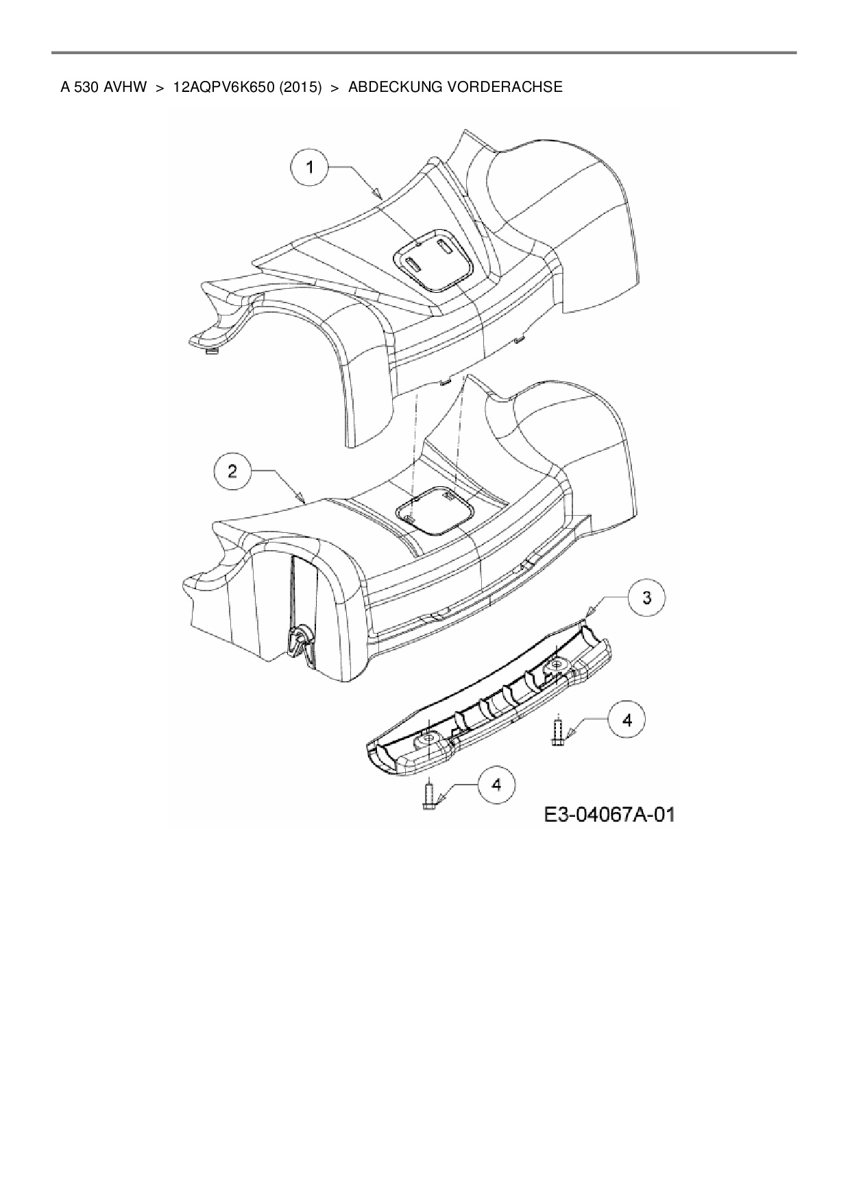 Ersatzteile für Motormäher mit Antrieb Wolf-Garten A 530 AVHW aus der Zeichnung Abdeckung Vorderachse: