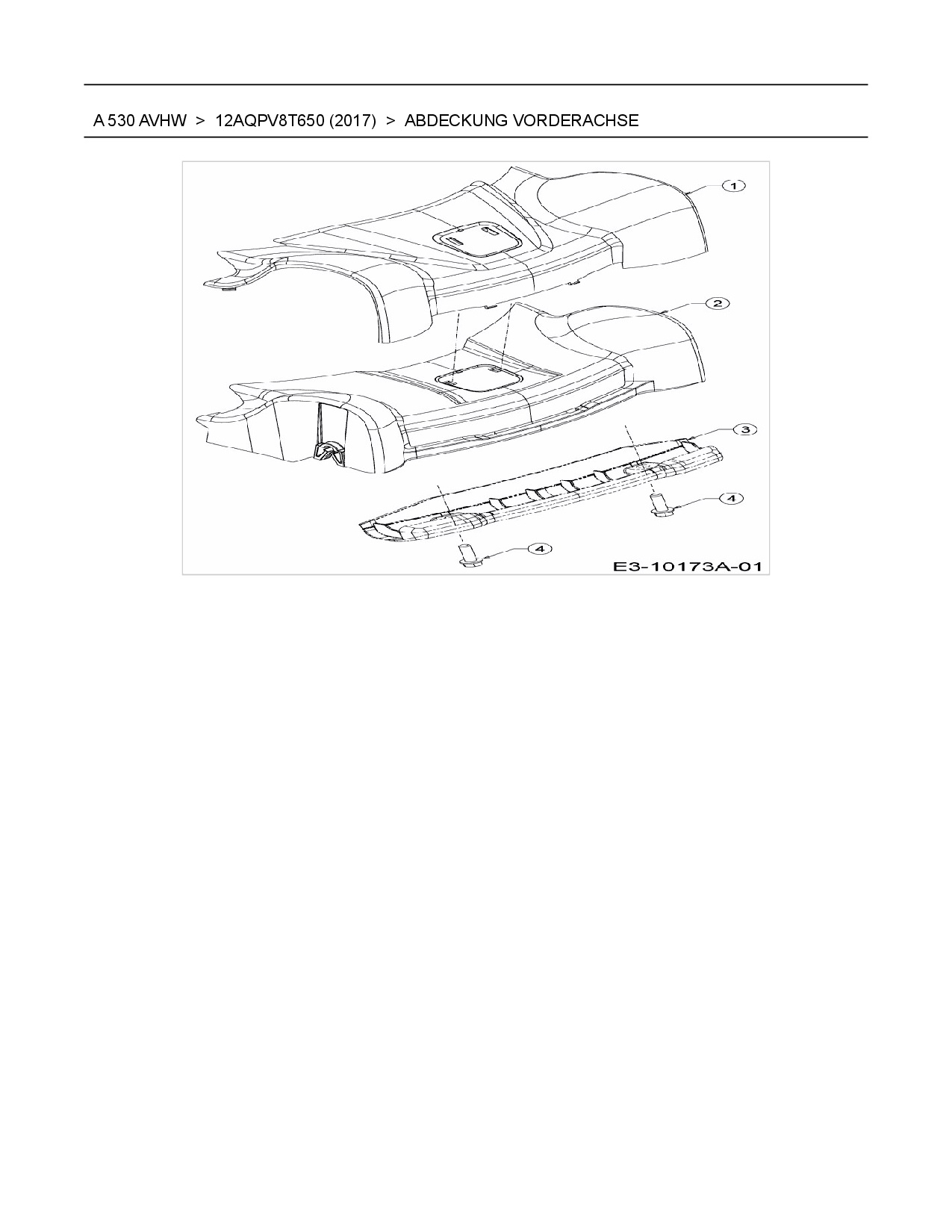 Ersatzteile für Motormäher mit Antrieb Wolf-Garten A 530 AVHW aus der Zeichnung Abdeckung Vorderachse: