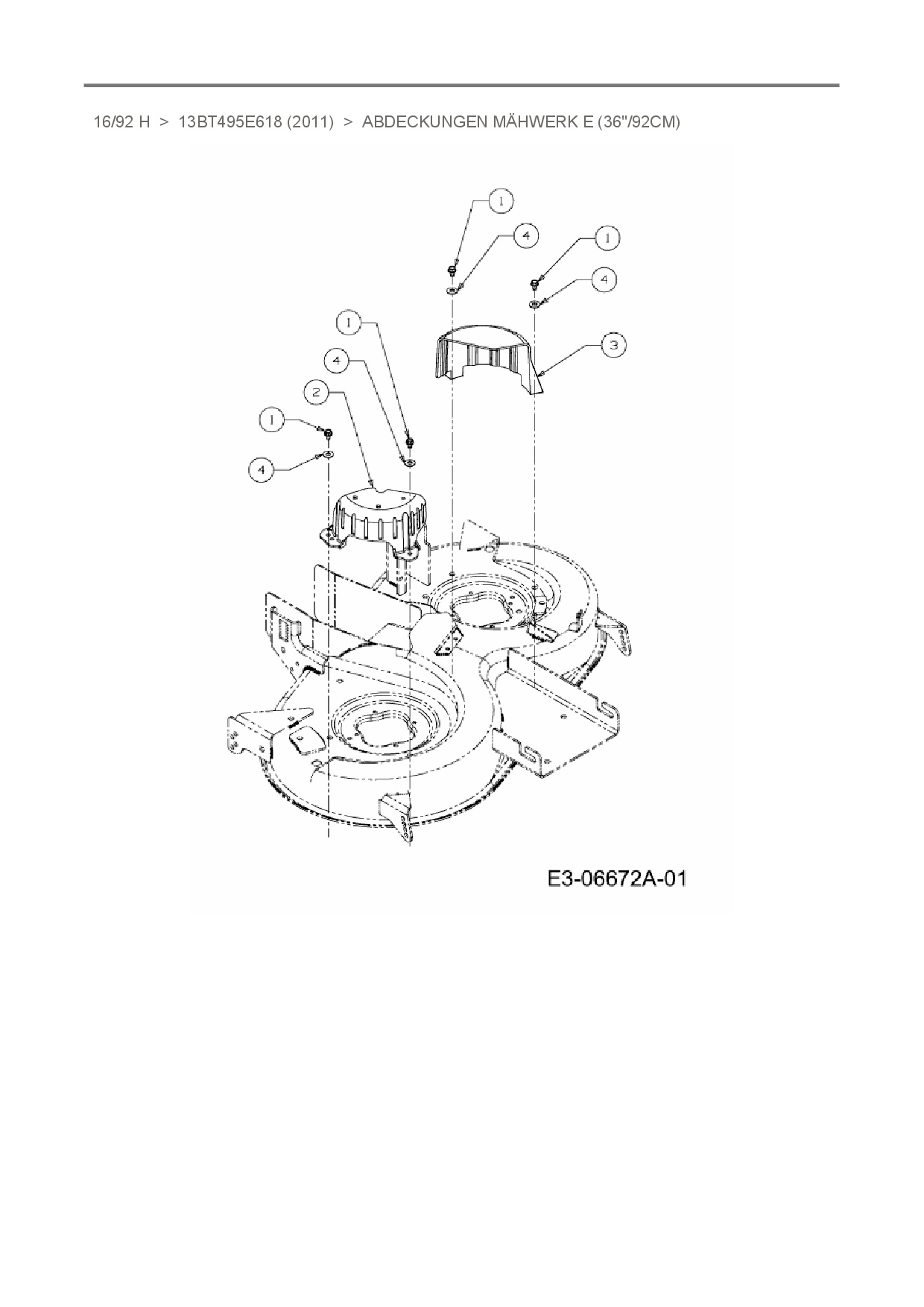 Ersatzteile für Rasentraktor Rasor 16/92 H aus der Zeichnung Abdeckungen Mähwerk E (36"/92cm)(1):