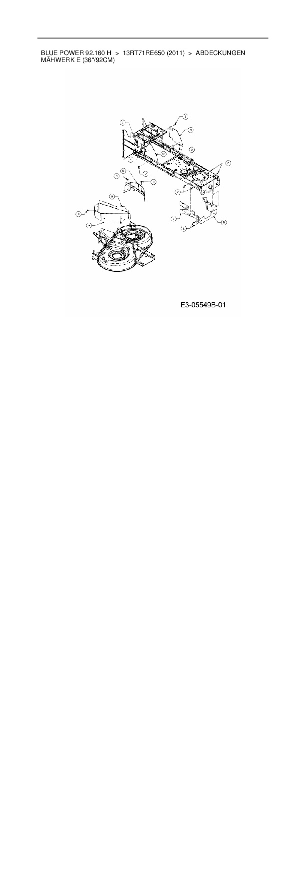Ersatzteile für Rasentraktor Wolf-Garten Blue Power 92.160 H aus der Zeichnung Abdeckungen Mähwerk E (36"/92cm):