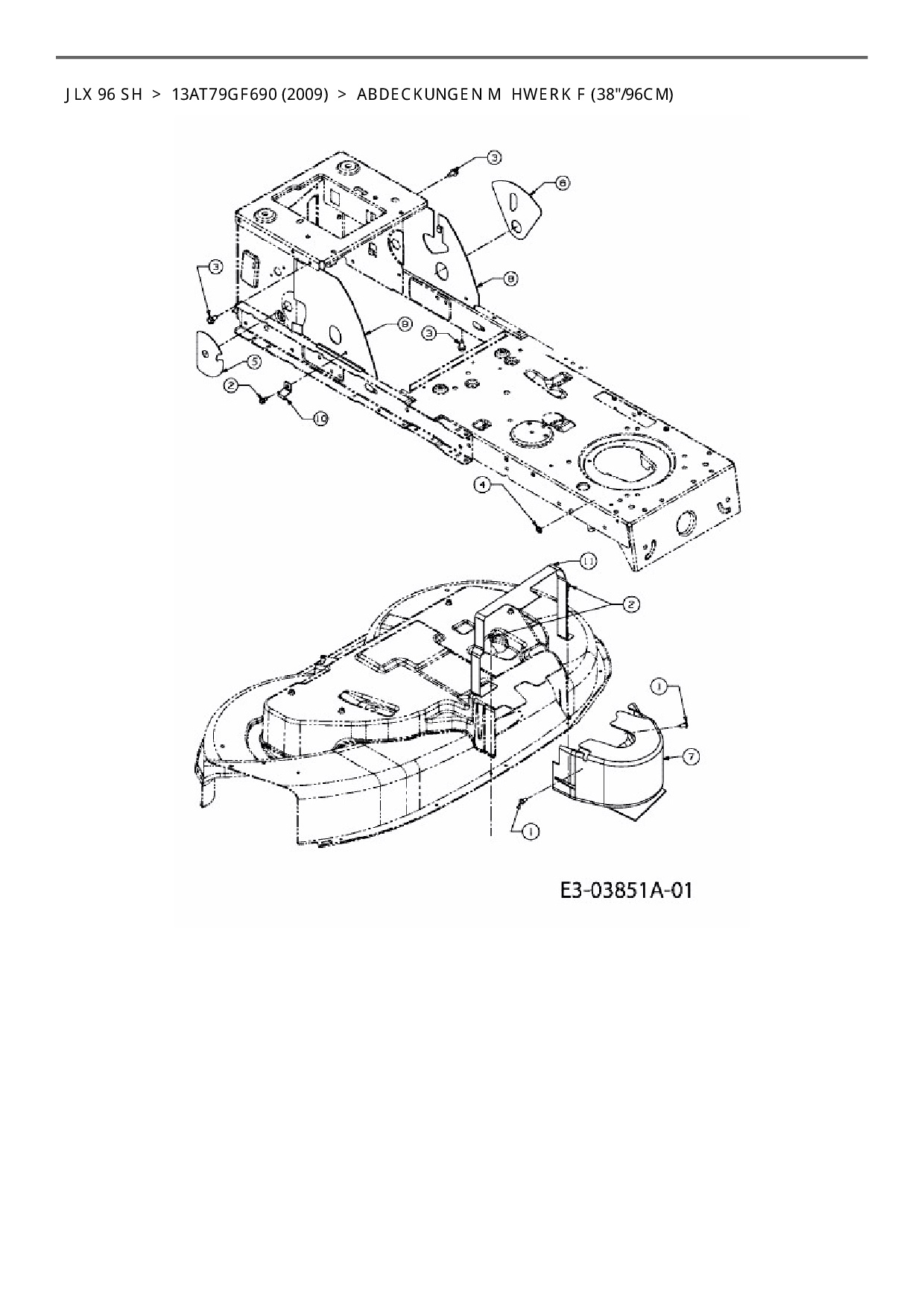Ersatzteile für Rasentraktor Gutbrod JLX 96 SH aus der Zeichnung Abdeckungen Mähwerk F (38"/96cm):