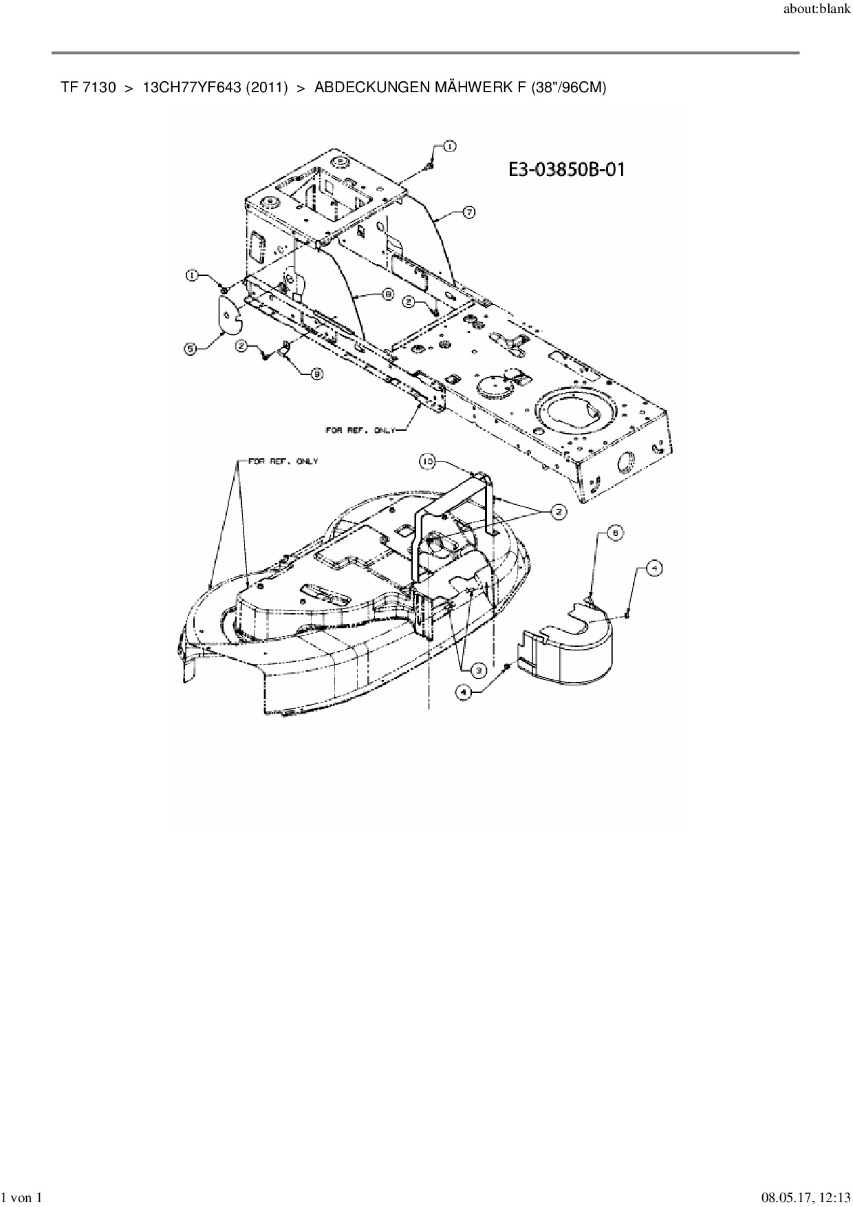 Ersatzteile für Rasentraktor Yard-Man TF 7130 aus der Zeichnung Abdeckungen Mähwerk F (38"/96cm):