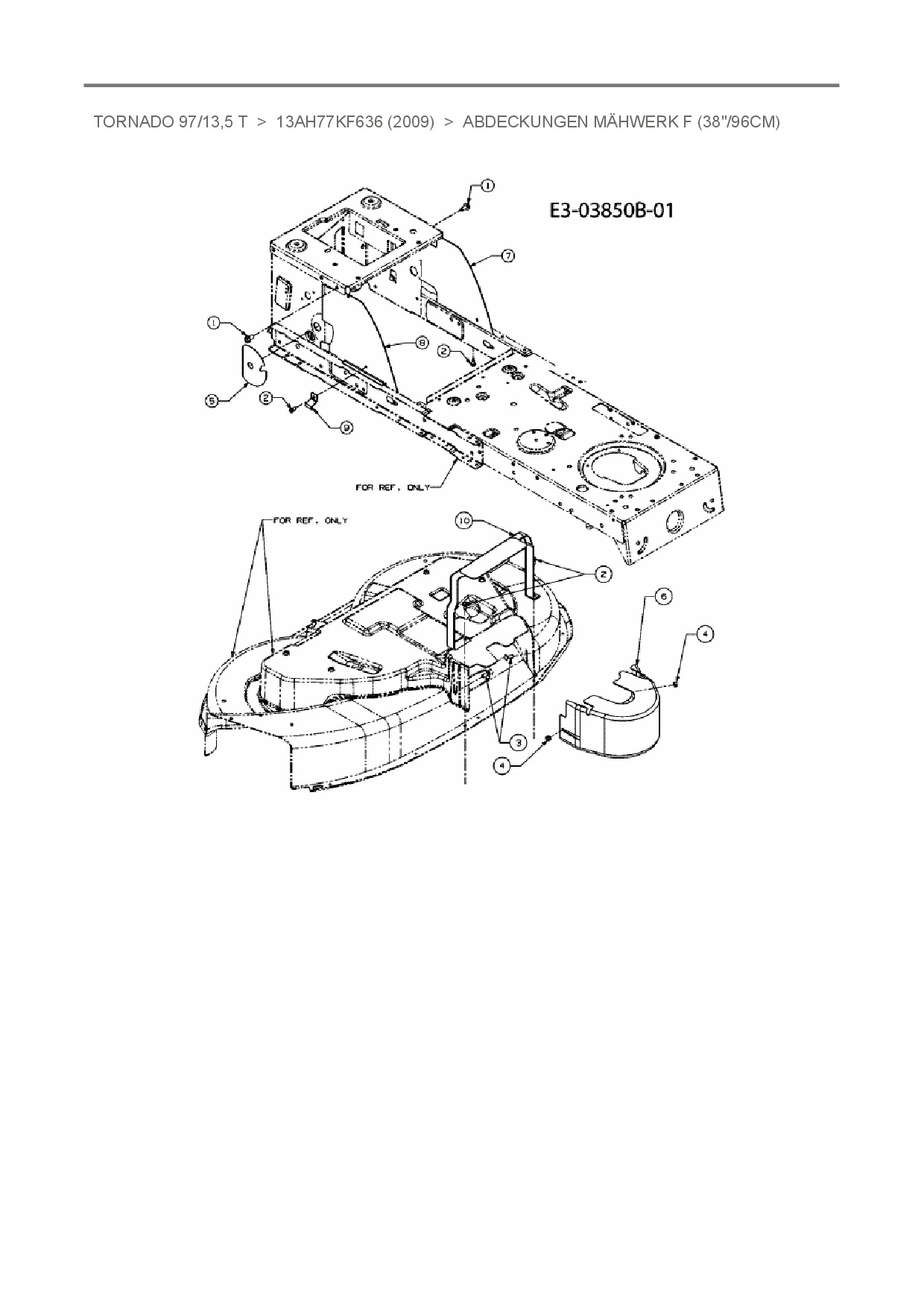 Zeichnung Abdeckungen Mähwerk F (38"/96cm)