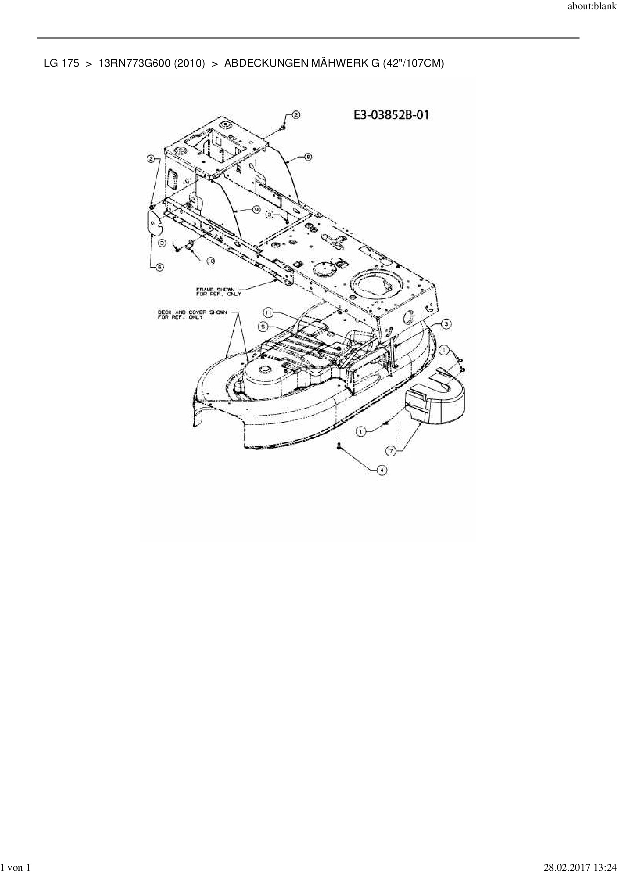 Ersatzteile für Rasentraktor MTD LG 175 aus der Zeichnung Abdeckungen Mähwerk G (42"/107cm):