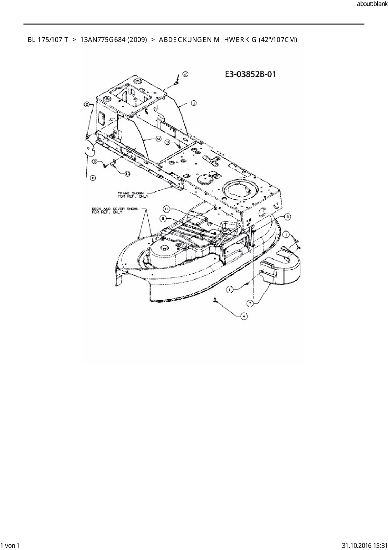 Ersatzteile für Rasentraktor Bolens BL 175/107 T aus der Zeichnung Abdeckungen Mähwerk G (42"/107cm):