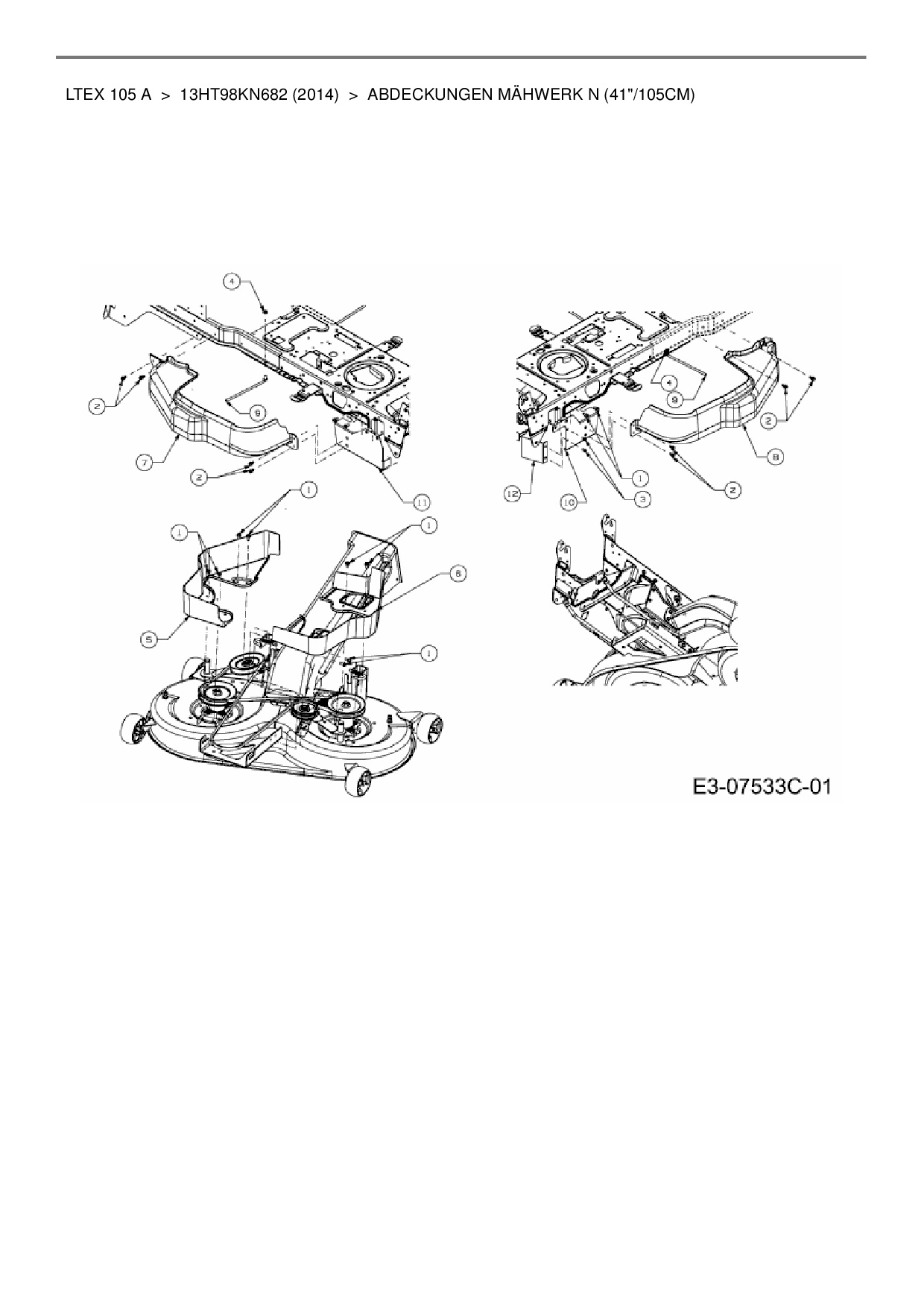 Ersatzteile für Rasentraktor MTD LTEX 105 A aus der Zeichnung Abdeckungen Mähwerk N (41"/105cm):