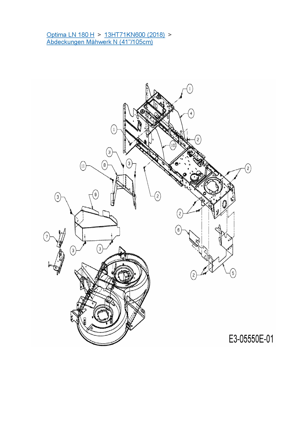 Download Ersatzteil-Zeichnung MTD Optima LN 180 H Zeichnung Abdeckungen Mähwerk N (41"/105cm) (PDF-Format)