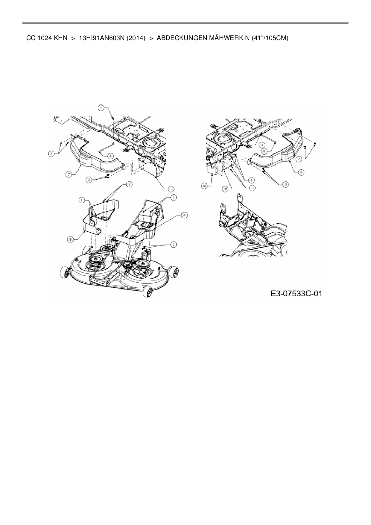 Ersatzteile für Rasentraktor Cub Cadet CC 1024 KHN aus der Zeichnung Abdeckungen Mähwerk N (41"/105cm):
