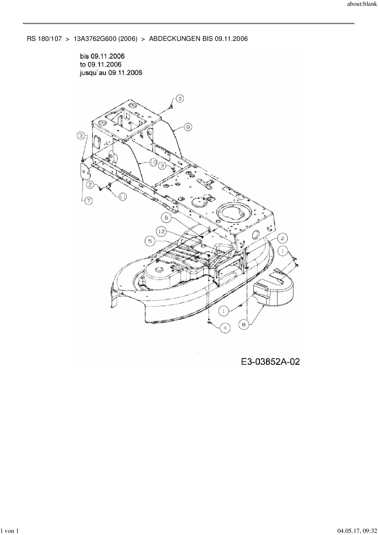 Ersatzteile für Rasentraktor MTD RS 180/107 aus der Zeichnung Abdeckungen bis 09.11.2006:
