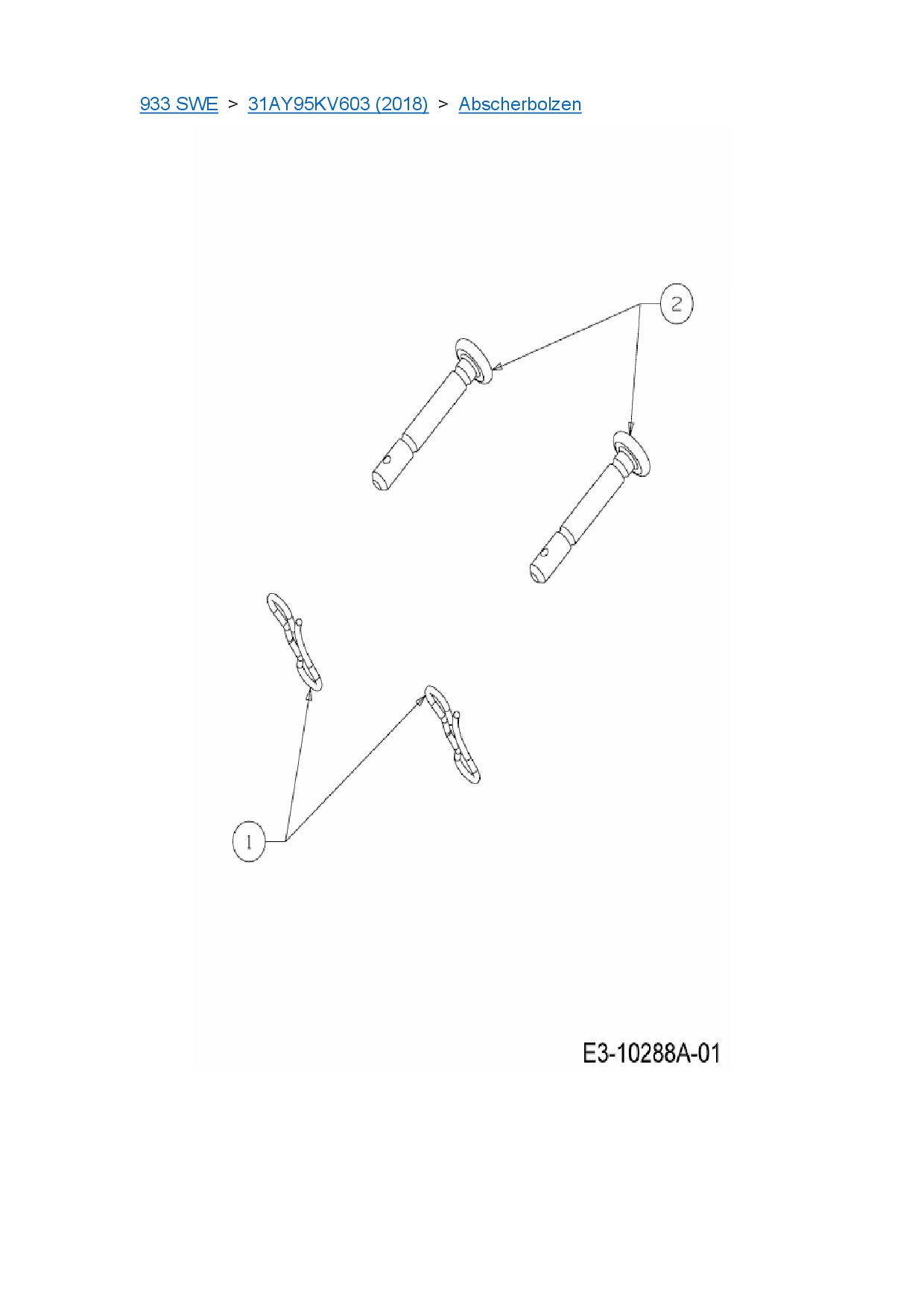 Ersatzteile für Schneefräse Cub Cadet 933 SWE aus der Zeichnung Abscherbolzen: