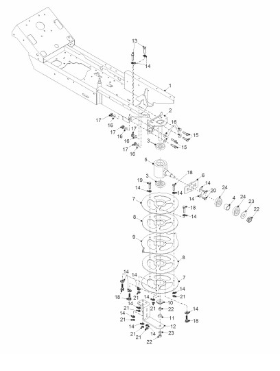 Zeichnung von ECHO-Motorgeräte Rasentraktoren X-Serie X-Serie Bj. 2007-2009 Achsaufnahme hinten: