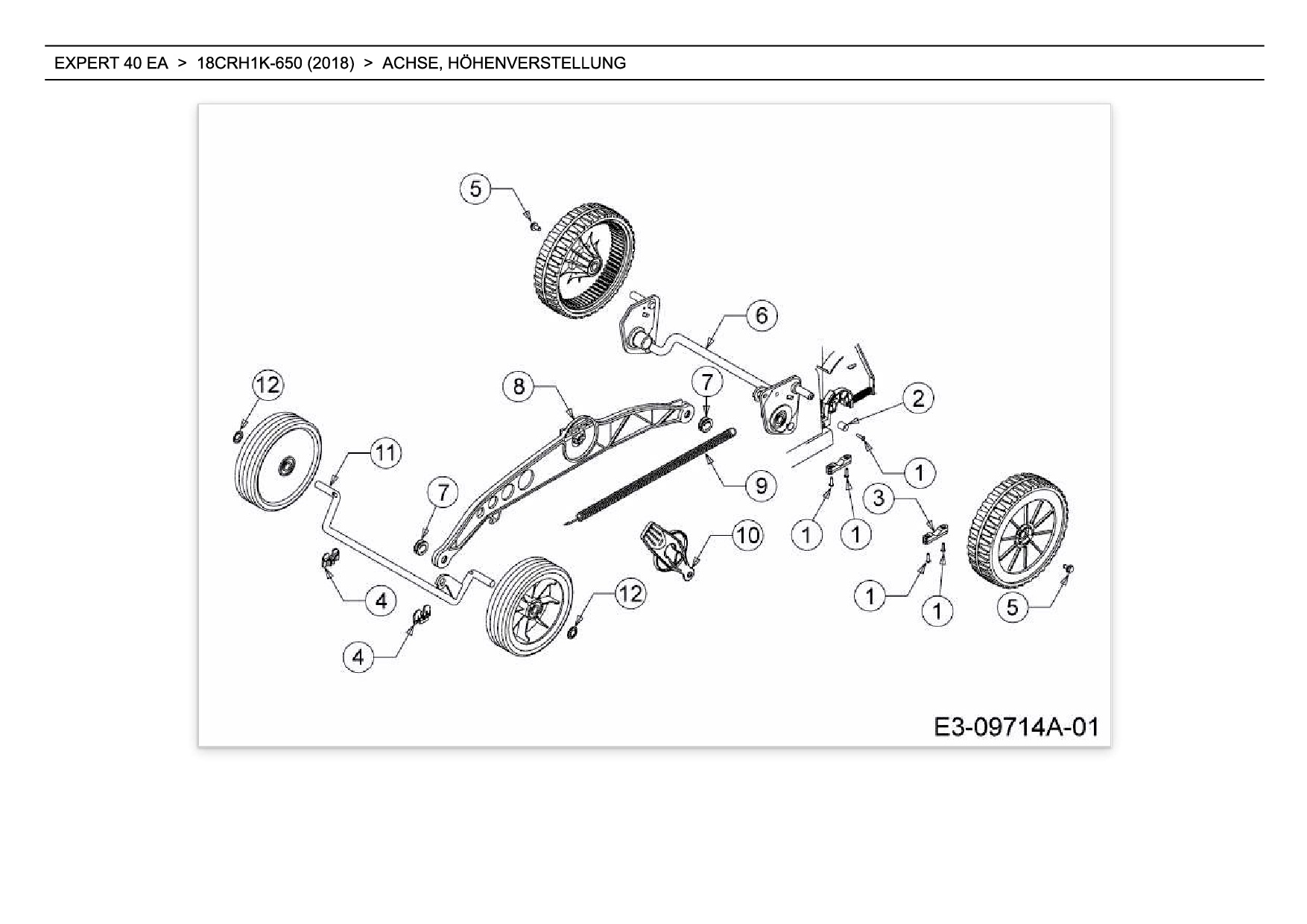 Ersatzteile für Elektromäher mit Antrieb Wolf-Garten Expert EXPERT 40 EA aus der Zeichnung Achse, Höhenverstellung: