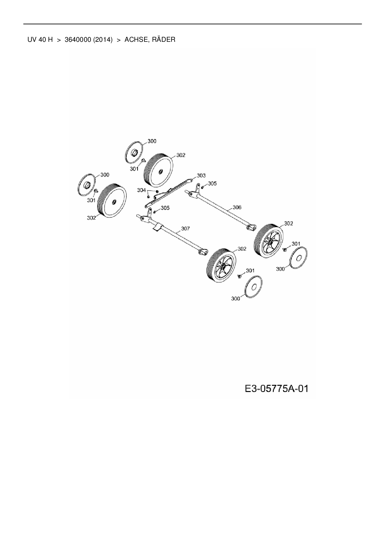 Download Ersatzteil-Zeichnung Wolf-Garten UV 40 H Zeichnung Achse, Räder (PDF-Format)