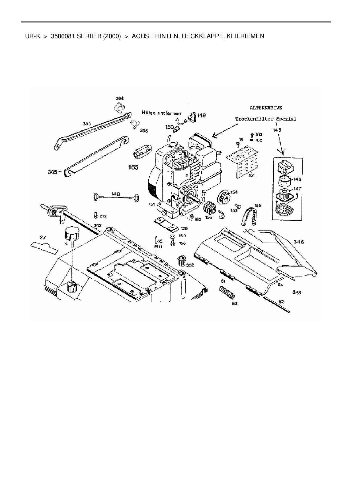 Ersatzteile für Motorvertikutierer Wolf-Garten UR-K aus der Zeichnung Achse hinten, Heckklappe, Keilriemen:
