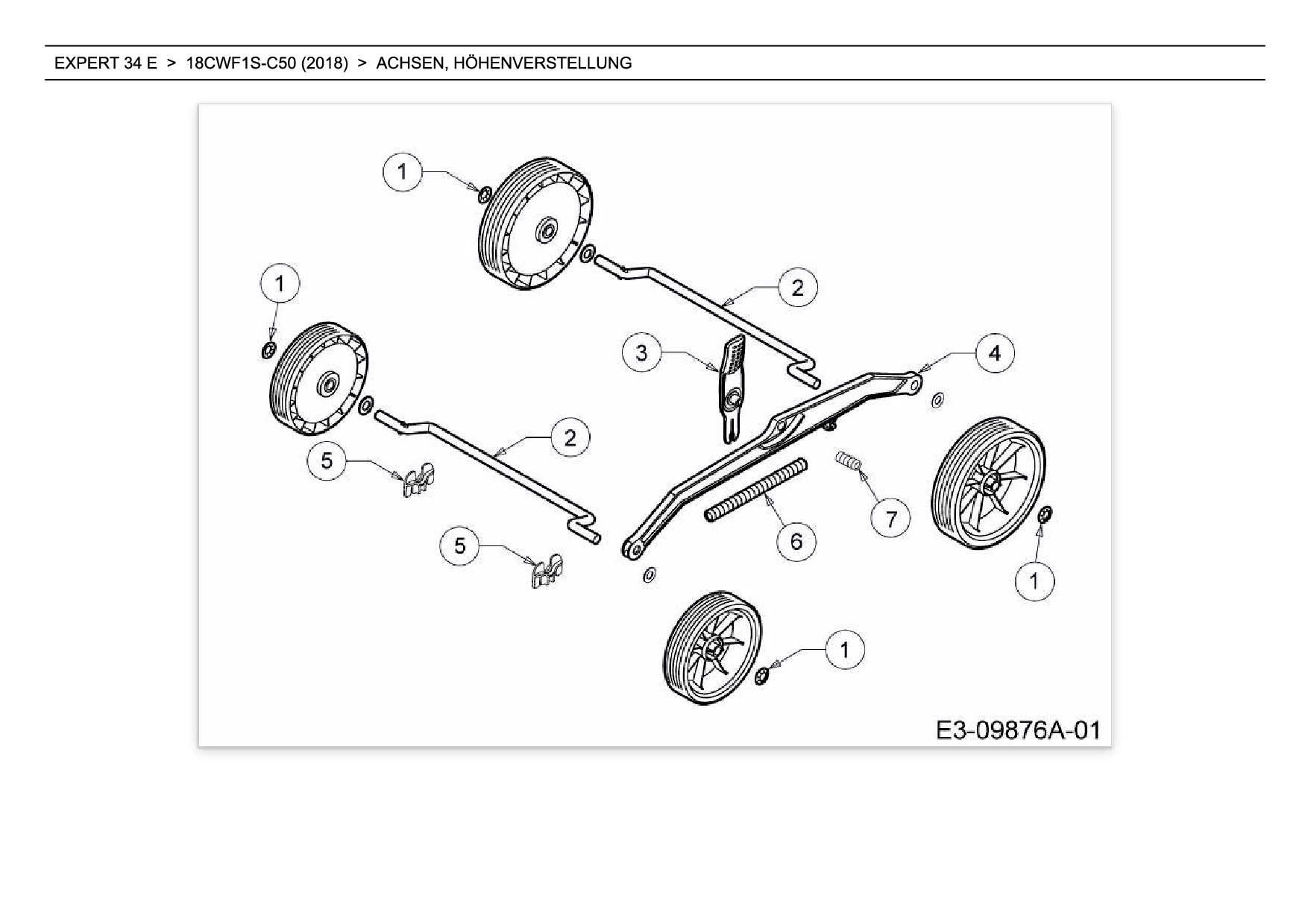 Download Ersatzteil-Zeichnung Wolf-Garten Expert EXPERT 34 E Zeichnung Achsen, Höhenverstellung (PDF-Format)