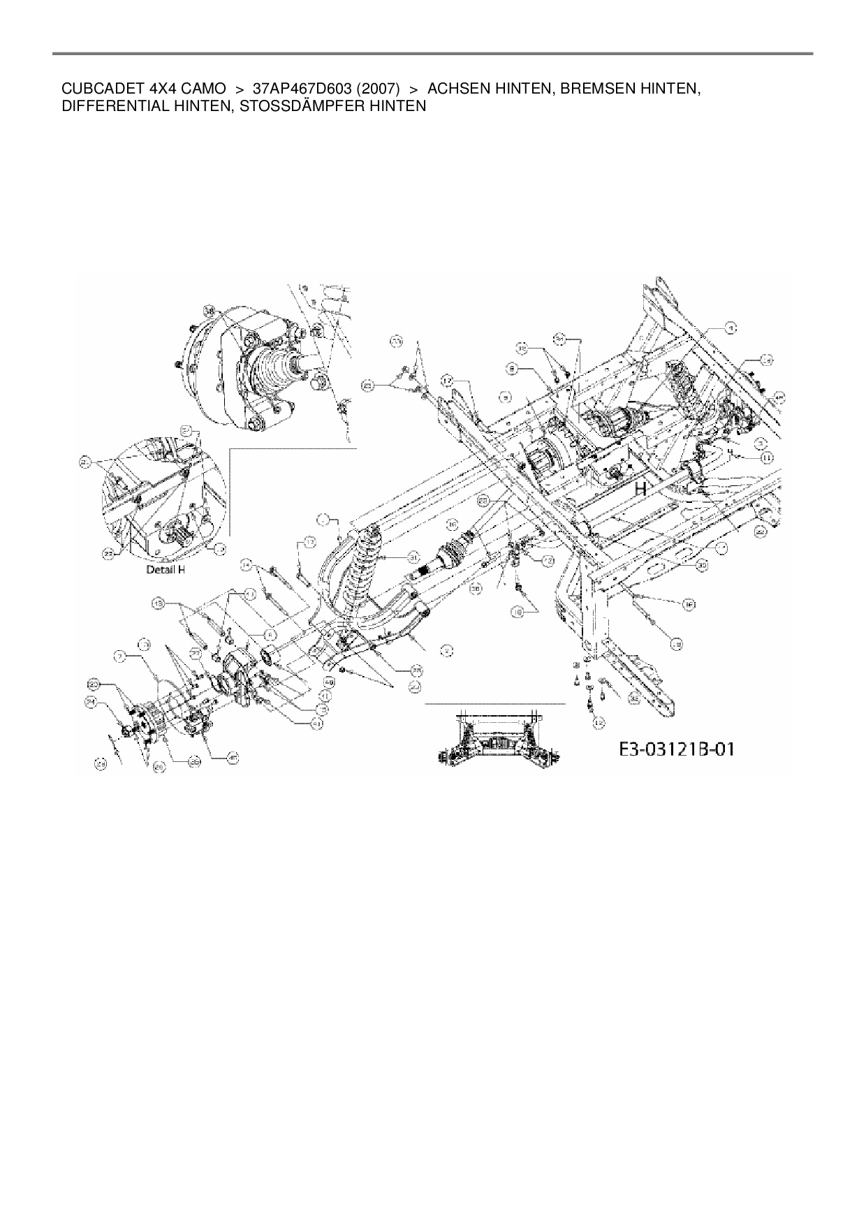 Ersatzteile für Utility Vehicle Cub Cadet CubCadet 4X4 Camo aus der Zeichnung Achsen hinten, Bremsen hinten, Differential hinten, Stossdämpfer hinten: