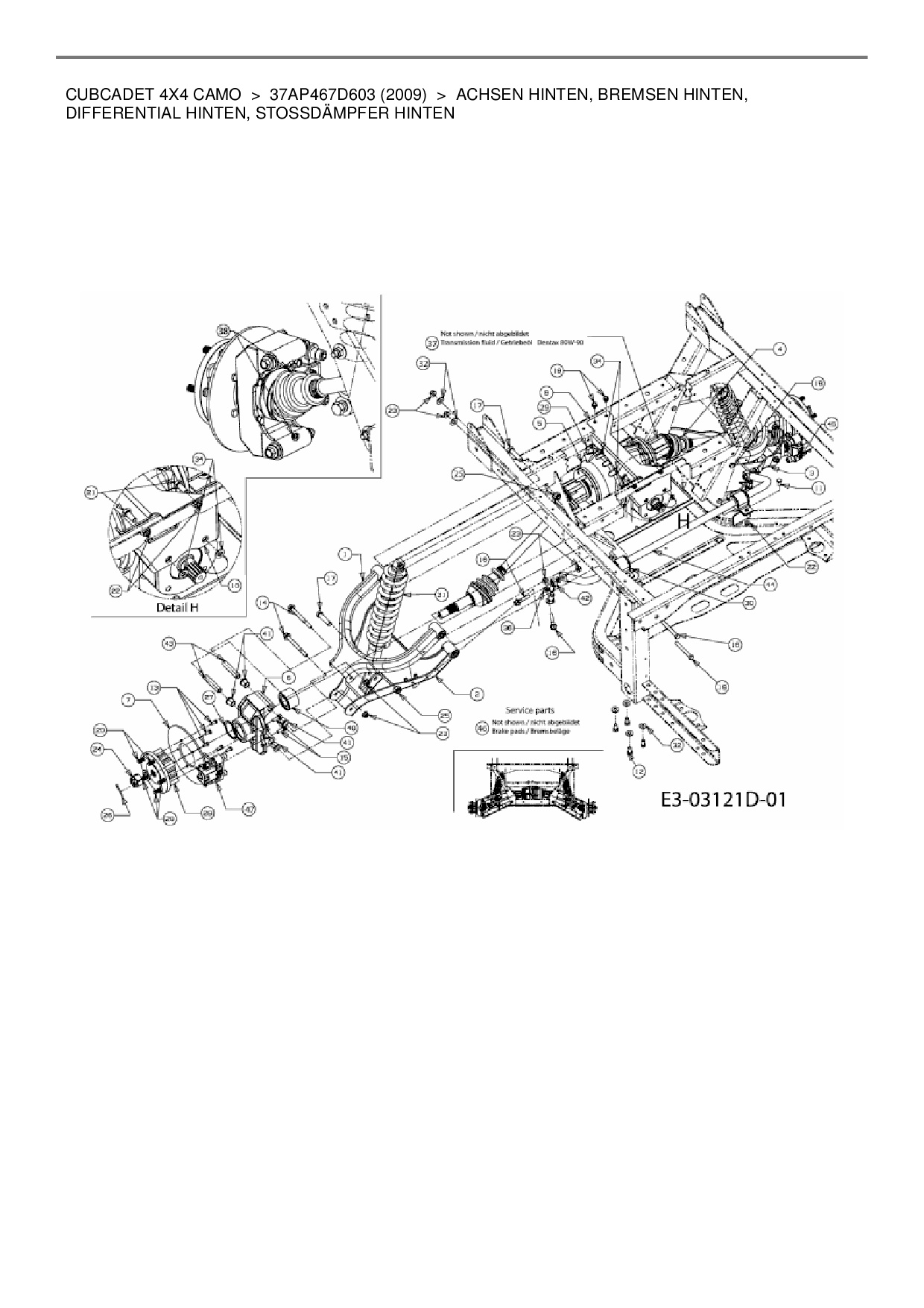 Download Ersatzteil-Zeichnung Cub Cadet CubCadet 4X4 Camo Zeichnung Achsen hinten, Bremsen hinten, Differential hinten, Stossdämpfer hinten (PDF-Format)