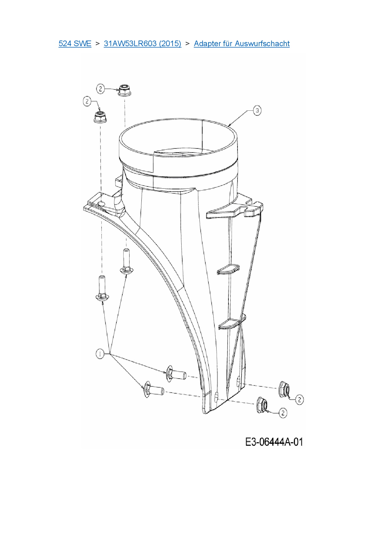 Ersatzteile für Schneefräse Cub Cadet 524 SWE aus der Zeichnung Adapter für Auswurfschacht: