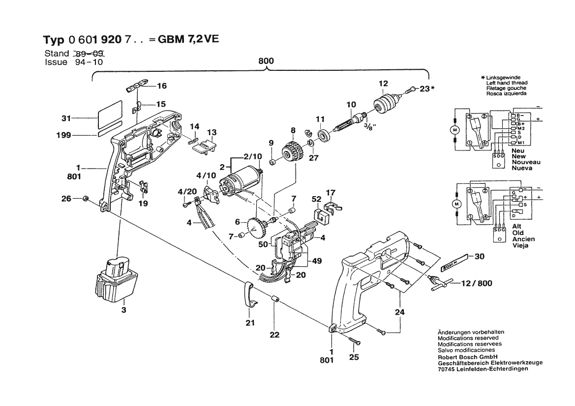 Ersatzteile für Bosch Akku-Bohrmaschine Akku-Bohrm.GBM | 7.2 V | 001 - EU (0 601 920 703)