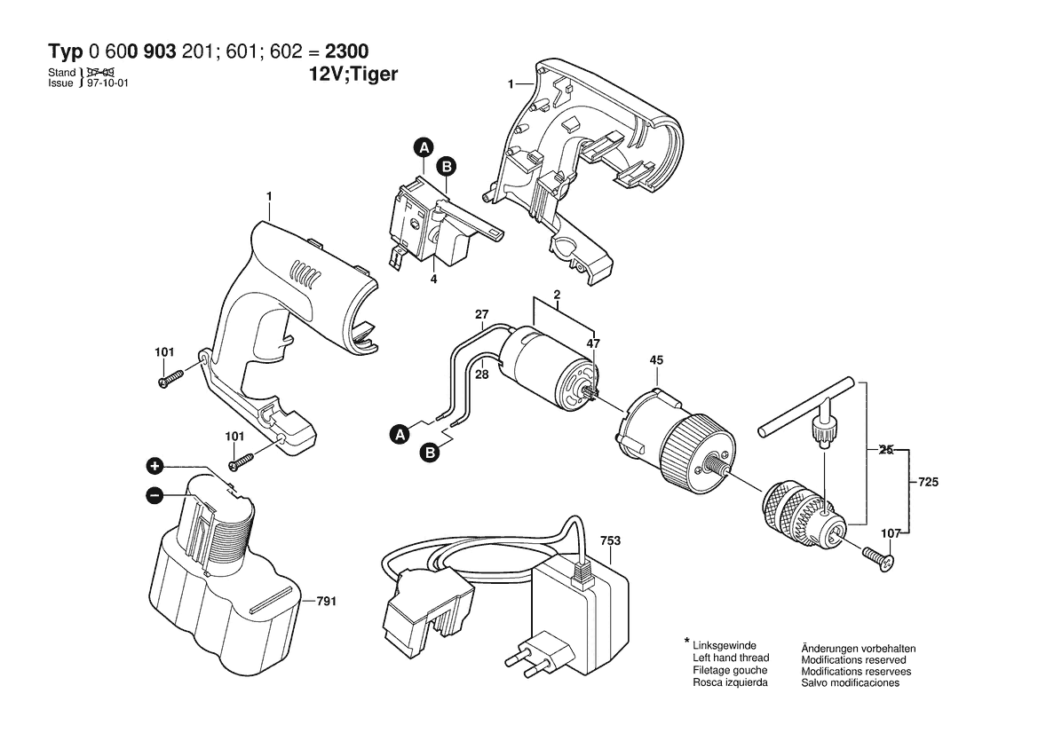 Ersatzteile für Bosch Akku-Bohrmaschine BS 12V | 12 V | 001 - EU (0 600 903 602)