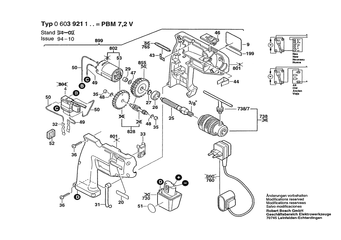 Ersatzteile für Bosch Akku-Bohrmaschine PBM 7,2 V | 7.2 V | 036 - GB (0 603 921 142)