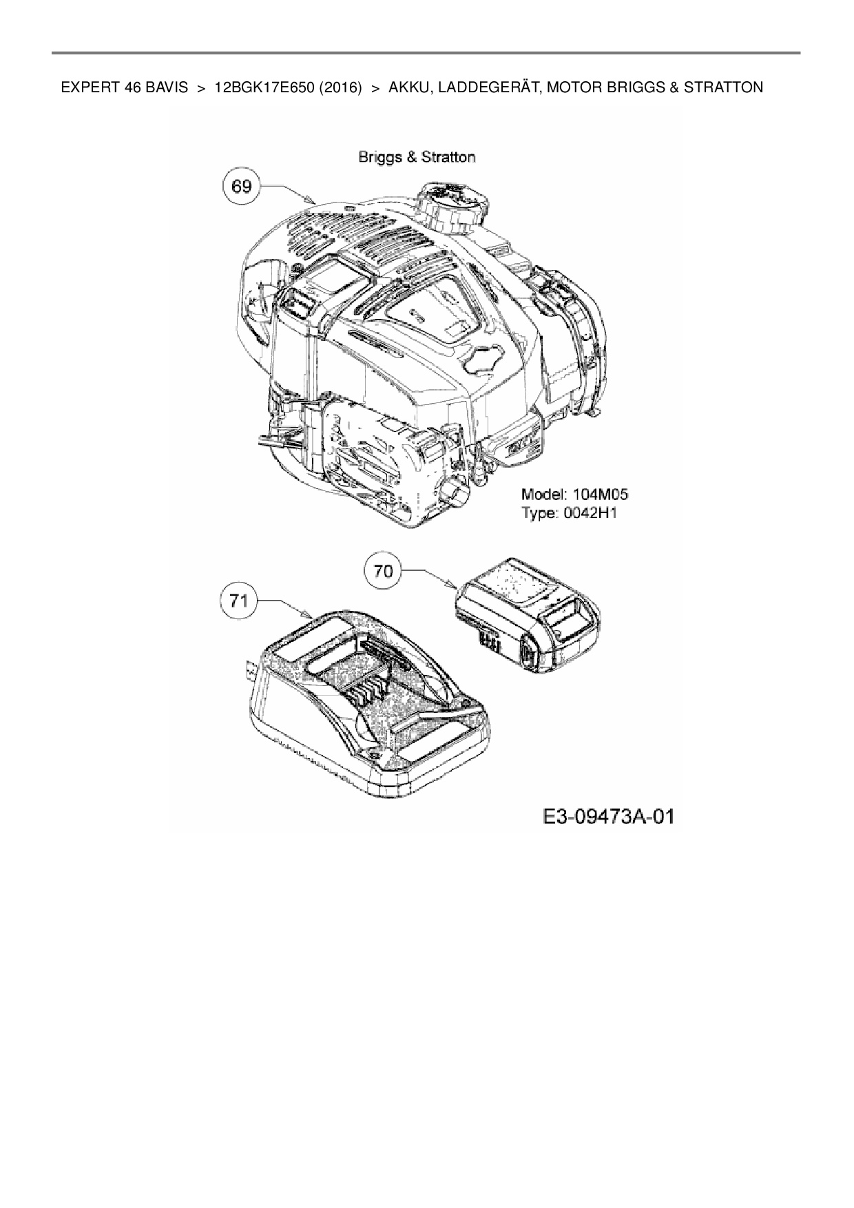Ersatzteile für Motormäher mit Antrieb Wolf-Garten Expert Expert 46 BAVIS aus der Zeichnung Akku, Laddegerät, Motor Briggs & Stratton: