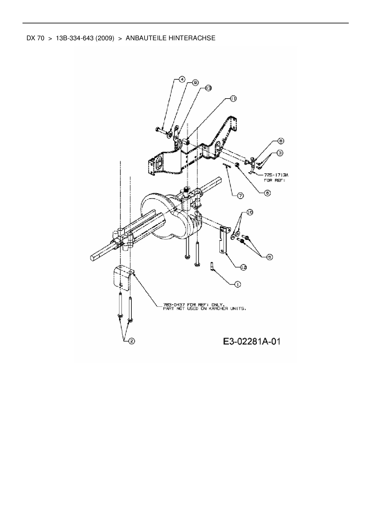 Ersatzteile für Rasentraktor Yard-Man DX 70 aus der Zeichnung Anbauteile Hinterachse: