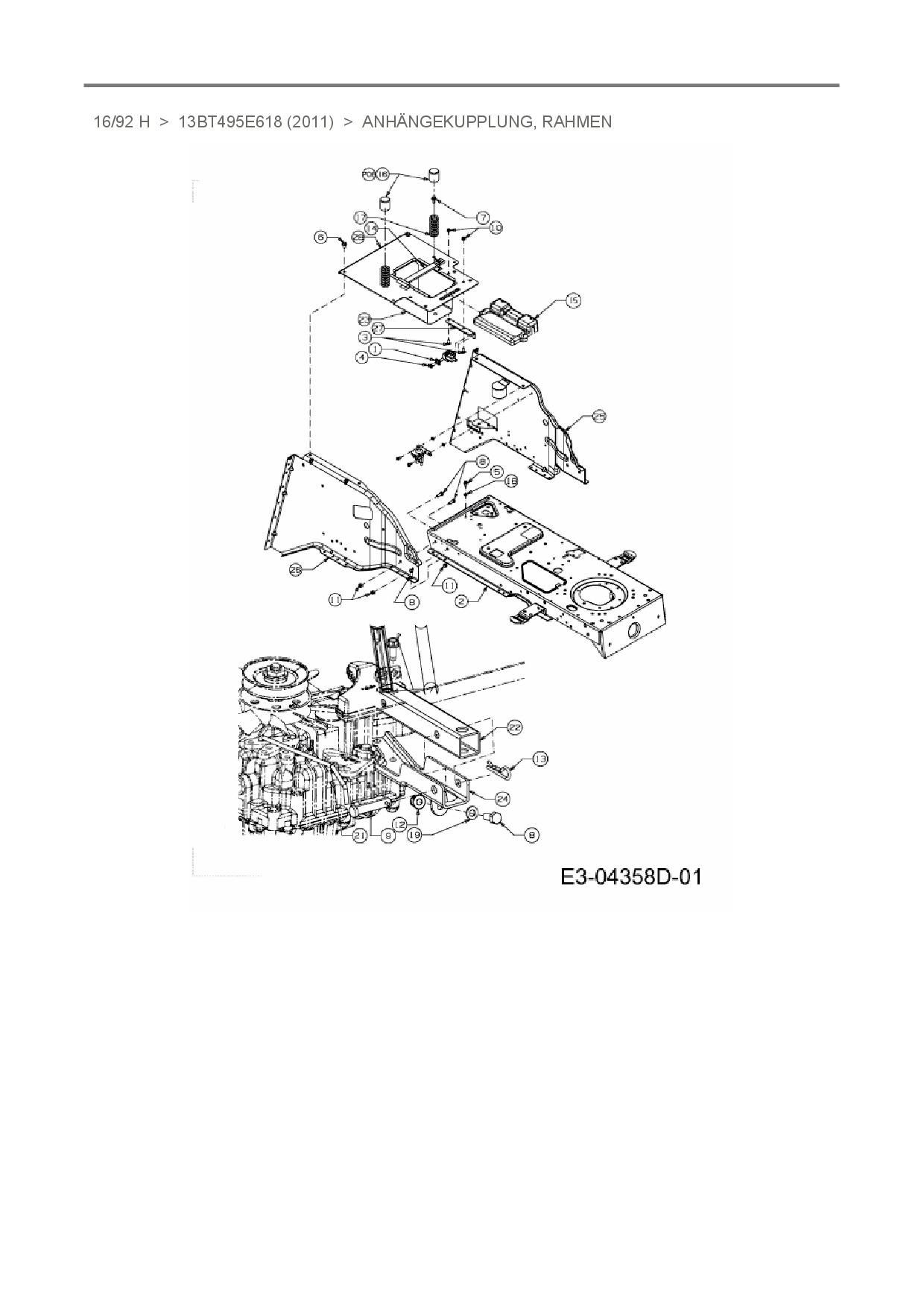 Zeichnung für Rasor Rasentraktor 16/92 H mit der Geräte-Artikelnr. 13BT495E618 ab Baujahr 2011: