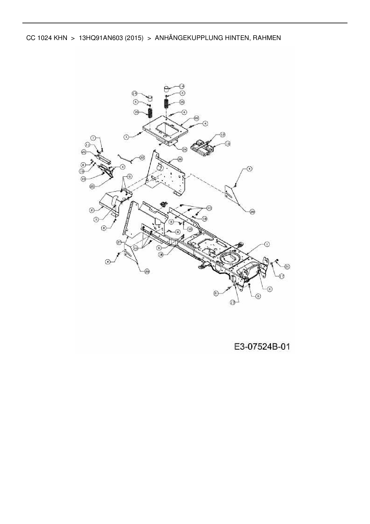Download Ersatzteil-Zeichnung Cub Cadet CC 1024 KHN Zeichnung Anhängekupplung hinten, Rahmen (PDF-Format)