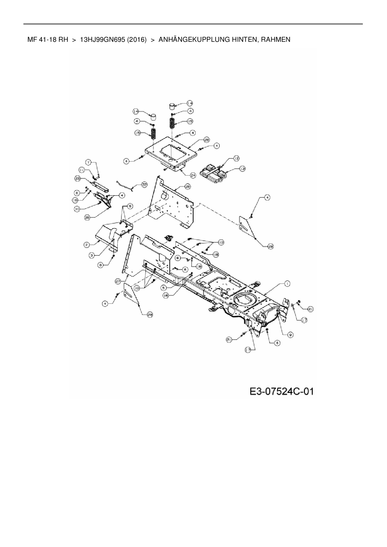 Ersatzteile für Rasentraktor Massey Ferguson MF 41-18 RH aus der Zeichnung Anhängekupplung hinten, Rahmen:
